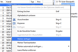 Primero, copia todos los canales que desees y, a continuación, modifica el orden dentro del paquete en la ventana central. Siguiendo con el ejemplo, selecciona las funciones de la lista de canales, añade todos los canales que desees de un proveedor al paquete y, más tarde, reorganízalos. Podemos conseguir una mayor claridad dentro de un paquete utilizando «marcadores». Imagínate que es como el título de un artículo, que también se muestra en la lista de paquetes de tu decodificador. De esta manera, es muy fácil dar más estructura a los paquetes grandes.