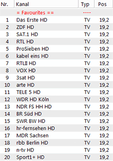 Si echáis en falta algo de innovación a la hora de crearlo, consultad vuestra revista de televisión como modelo. En mi casa, por ejemplo, la lista de favoritos solo se aceptó después de que el resumen diario de la revista de televisión se reflejara en el orden de los programas de la caja. En primer lugar, seleccionamos un paquete en la ventana de la derecha (normalmente el paquete estándar «Favoritos»).